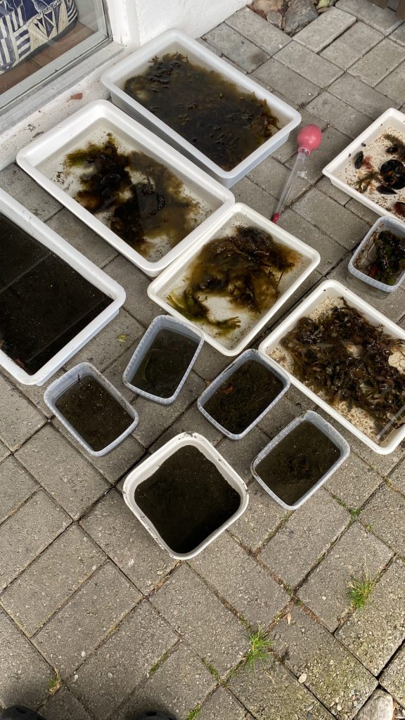 Therefore, we used several days that week to collect fresh material from around the area: by using nets or hands either from land or while in the water snorkeling (4).