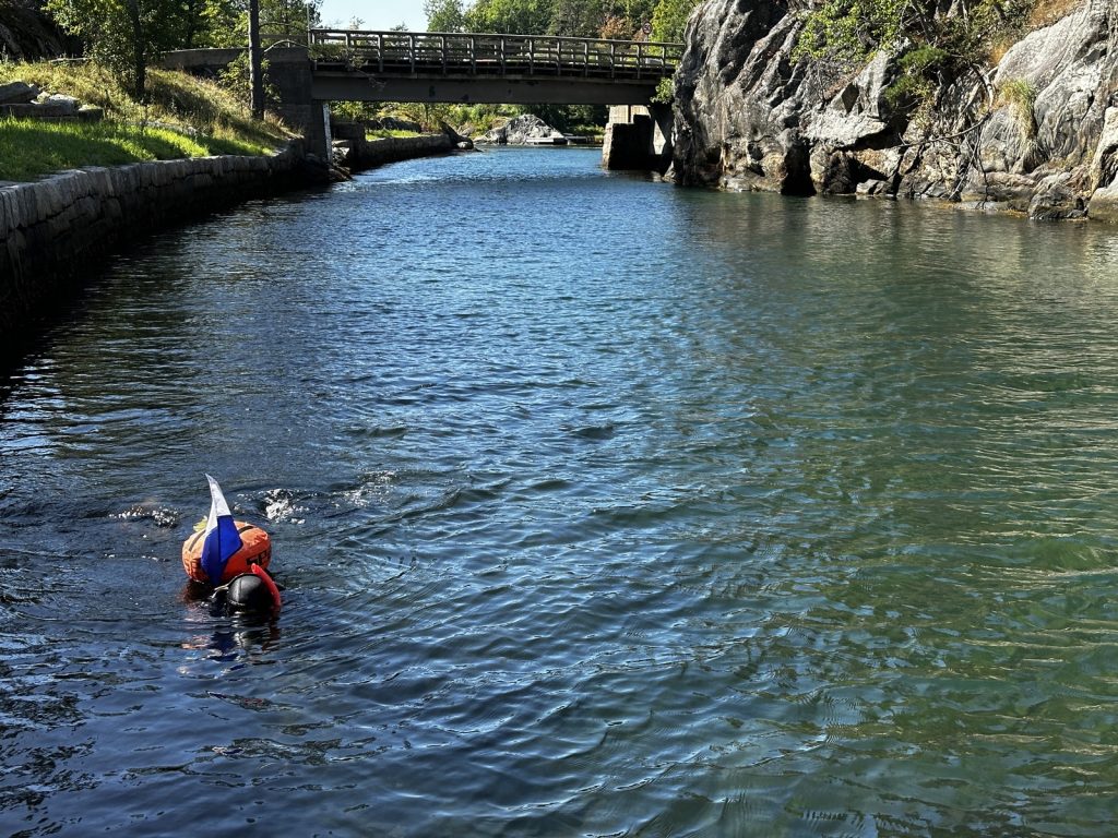 4. Snorkeling for samples in strong tidal current right under the little bridge, with Jon and Cessa. Photo Katrine Kongshavn, UiB.