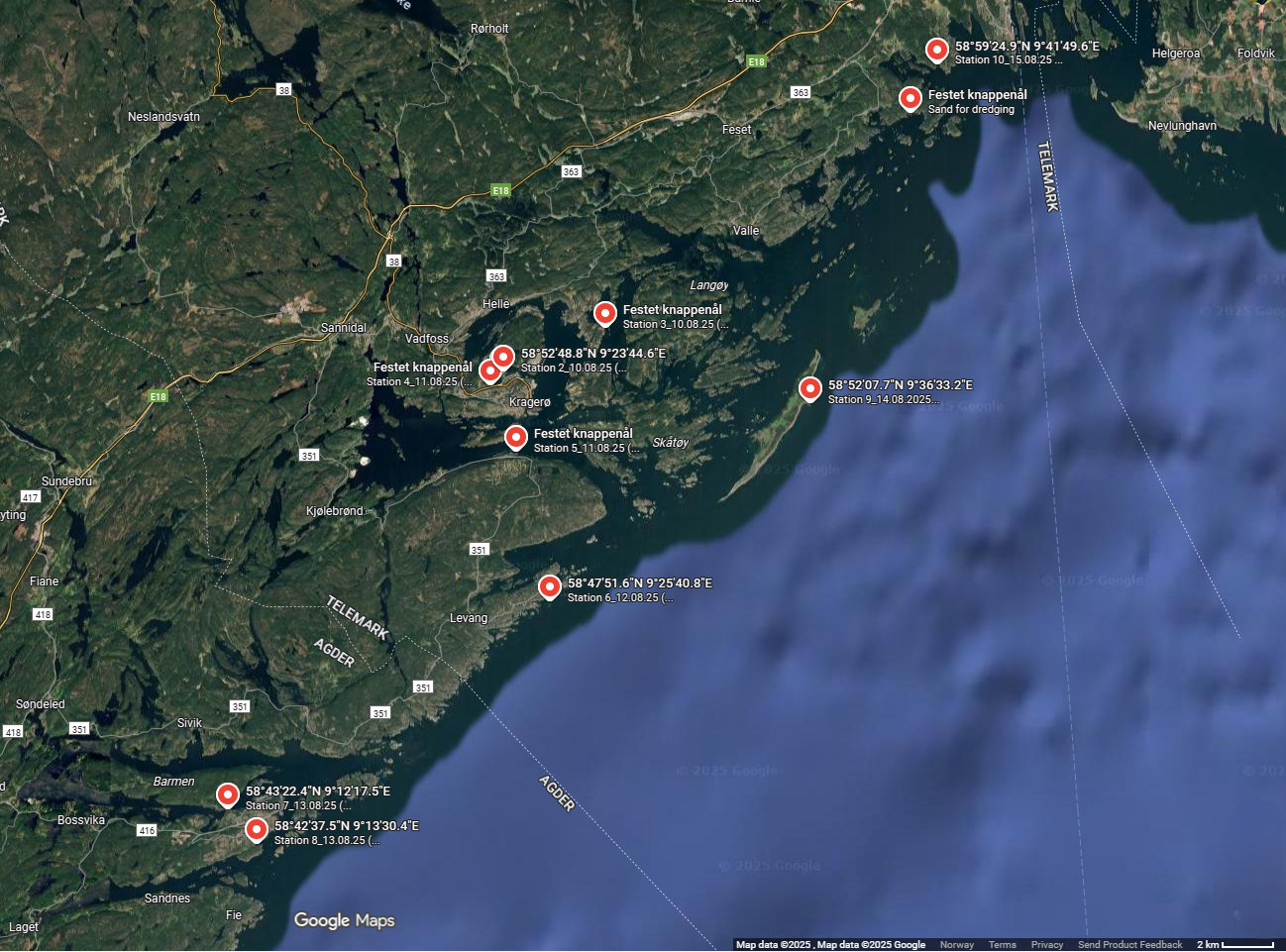This time, the team from the “Lower Heterobranch & Pyramidellidae” project headed south to the coastal town of Kragerø, a popular tourist destination in southern Norway. Known as a peaceful escape for Norwegians, the area offers forests, fjords, and islands; and during the summer months, its population quadruples. Edvard Munch fell in love with the place and found peace and inspiration there; he called it “The Pearl of the Coastal Towns” (Perlen blandt kystbyene). But for the snail hunters, there was a very different reason to come here.